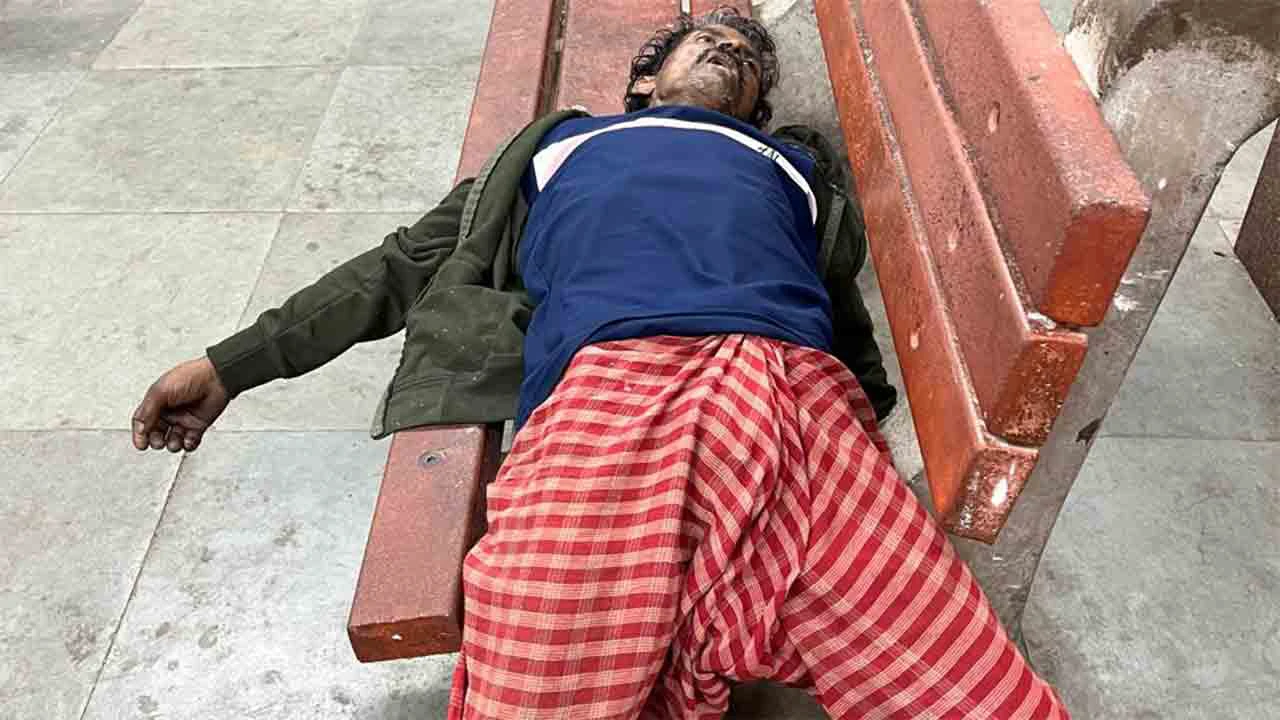 দমদম স্টেশনের ২ ও ৩ নম্বর প্ল্যাটফর্মের মাঝের বেঞ্চে সোমবার রাতে এক ব্যক্তিকে দীর্ঘক্ষণ নিস্পন্দ অবস্থায় পড়ে থাকতে দেখা যায়। রাত ১০টা নাগাদ যাত্রীরা বিষয়টি লক্ষ্য করার পর রেল পুলিশ ও কর্মীদের খবর দিলেও, ওই ব্যক্তিকে হাসপাতালে নিয়ে যাওয়ার কোনো তৎপরতা চোখে পড়েনি। প্রত্যক্ষদর্শীদের দাবি, বারংবার ডাকা সত্ত্বেও ওই ব্যক্তির কোনো সাড়াশব্দ পাওয়া যাচ্ছিল না।