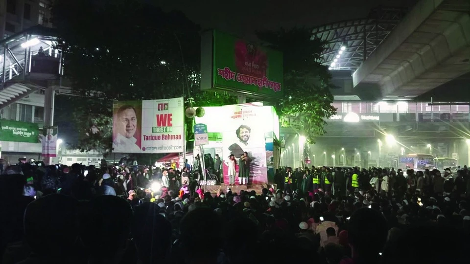 নেতা ওসমান হাদি হত্যার বিচার চেয়ে ঢাকার শাহবাগ মোড়ে রাতভর বিক্ষোভ দেখিয়েছে ইনকিলাব মঞ্চ। কট্টরপন্থী এই নেতার ওপর হামলার প্রতিবাদে হাজার হাজার মানুষ জড়ো হয়ে ভারত এবং প্রধানমন্ত্রী নরেন্দ্র মোদীর বিরুদ্ধে তীব্র স্লোগান দেয়। আন্দোলনকারীদের দাবি, আগামী ২৭ কার্যদিবসের মধ্যে এই হত্যাকাণ্ডের বিচার সম্পন্ন করতে হবে। অন্যথায় প্রধান উপদেষ্টার বাসভবন যমুনা ঘেরাও করার হুমকি দিয়েছেন নিহতের ভাই শরিফ ওমর বিন হাদি।